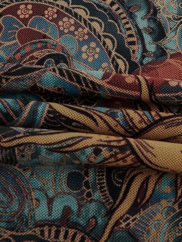 • Feature: Boho Style, All Over Print, Paisley Print, Spaghetti Straps, Lettuce Hem, Sheer Mesh, Short Dress for Curvy Women