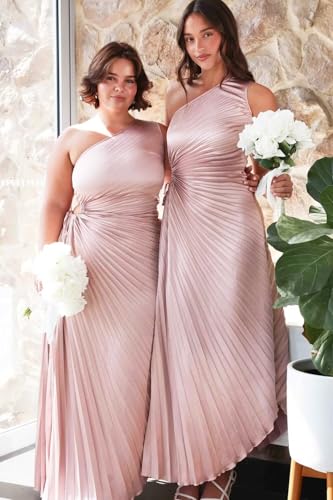 HOT ! SEIM Pleated Satin Bridesmaid Dress One Shoulder Maxi Formal Evening Dresses for Women