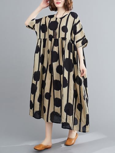 • LOOSE FIT DESIGN: One size with a loose fit. Loose dress length: 47.2 in. Bust: 55.9 in. Sleeve width: 8.2 in. This polka dot dress for women plus size features chic black dots. Polka dot summer dress
