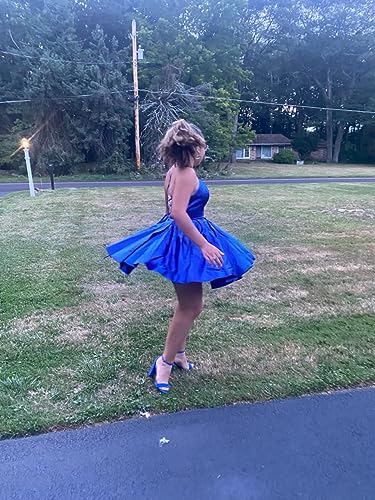 POMUYOO Spaghetti Strap Short Satin Homecoming Dresses for Teens A-line Cocktail Prom Gown with Pockets YG154 5
