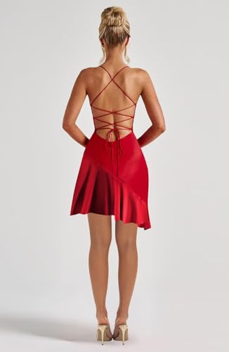 • Features: Satin short homecoming dresses with slit ruffles, high low, mermaid, tight bodycon, spaghetti straps, deep v neck/square neck, open back/backless, corset, lace-up back, sleeveless, above knee length, mini graduation cocktail party dress