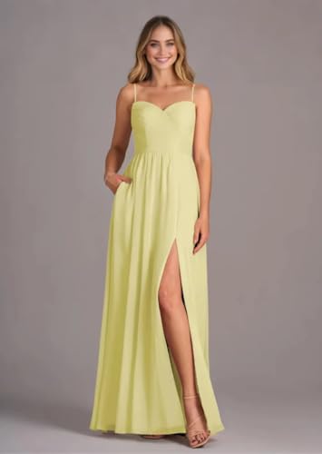 • Features: Long Chiffon Bridesmaid Dresses with Scarf and Pockets for Women 2025, spaghetti strap Formal Gowns, A Line Wedding Guest Dresses, Sleeveless Prom Dress, Evening Dress with Slit. Built-in Bra, Floor Length, Lace Up Back. Perfect for Any Special Occasion.