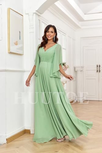 • Fabric type: Fabric:Chiffon V Neck Mother of The Bride Dresses for Wedding 2025 Ruffle Sleeve Bridesmaid Dress with Slit Long Formal Maxi Evening Gowns for Women Wedding Guest