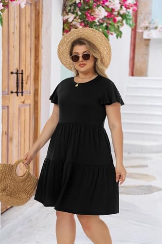 More information about HiMONE Summer Dresses for Women 2025 Vacation Sundresses Ruffle Sleeve Boat Neck with Pockets A Line Casual Dress XS-2XL