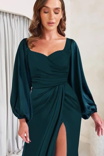More information about Long Sleeve Satin Bridesmaid Dresses for Women with Slit Ruched Long Corset Prom Formal Evening Ball Gown