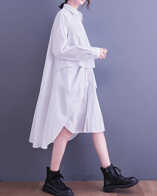 ellazhu Women's T-Shirt Dress Casual Lapel Long Sleeve Oversize Irregular Hem Button Down Solid GZ622 5
