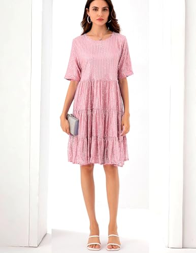 More information about Sequin Babydoll Summer Dress,Sparkly Glitter Dress Short Flowy Tiered Tunic Dress for Women Party Club Night
