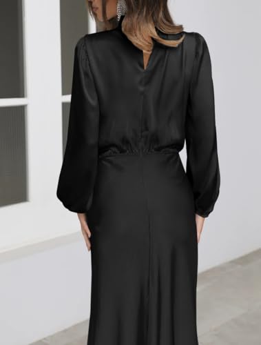 • Material: Women’s long sleeve formal satin dress is made of high quality satin fabric, and it's soft and lightweight. Unique design with the exquisite workmanship, the fall long sleeve satin dress bring you smooth delicate silky touching experience, not see through.
