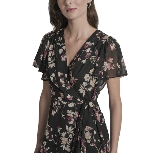 More information about DKNY Women's Cap Sleeve Surplice Neck Side Tie Faux Wrap Midi Dress