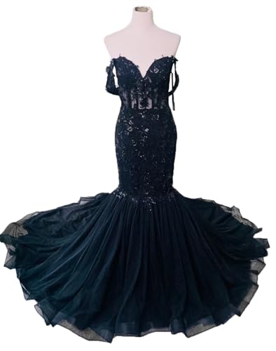 More information about Ftupza Tulle Mermaid Wedding Dresses for Bride Off Shoulder Lace Wedding Gown Long Black Bridal Gown