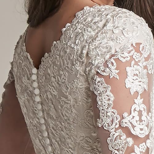More information about Women's Lace Beach Wedding Dresses for Bride 2025 V Neck Tulle Applique Bridal Gowns with Long Sleeve