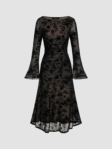 More information about CIDER Maxi Women's Dresses Floral Lace Ruched Long Sleeve Boat Neck Party Evening Maxi Dress