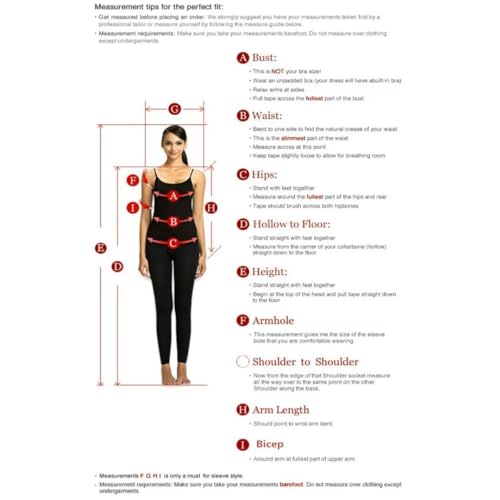 • Size choose: Please refer fo our size chart,we offer customized size for you if our seller standard size not fit you ,you tell us your bust,hips,waist,shoulder to hem with your shoe heels to ensure a perfect fit.