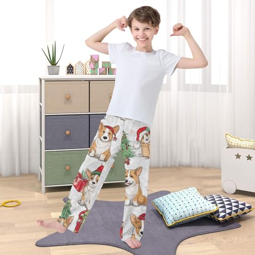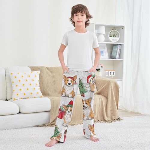 Xmas Corgi Dog Trees Boys Long Pants Soft Trousers Elastic Waist Kids Lounge Bottoms with Pockets S-XL 4
