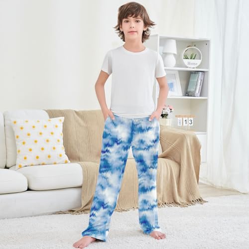 Boy's Pants Water Blue White Jogger Pants Elastic Waist Long Bottoms Trousers with Pockets 6-14 Years 6