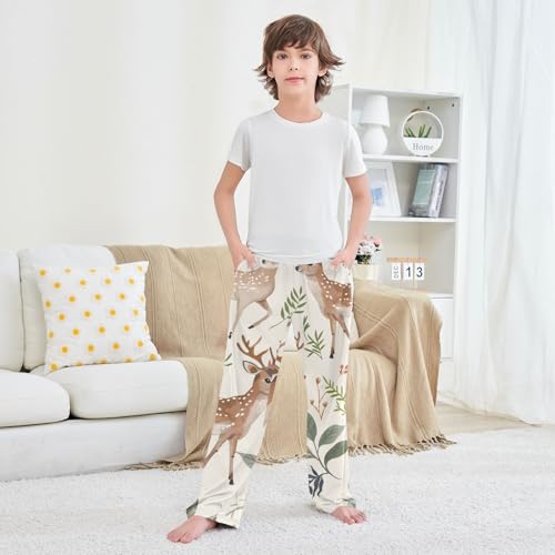 ZZXXB Deer and Flowers Boys Long Pants Soft Trousers Elastic Waist Kids Lounge Bottoms with Pockets S-XL 1