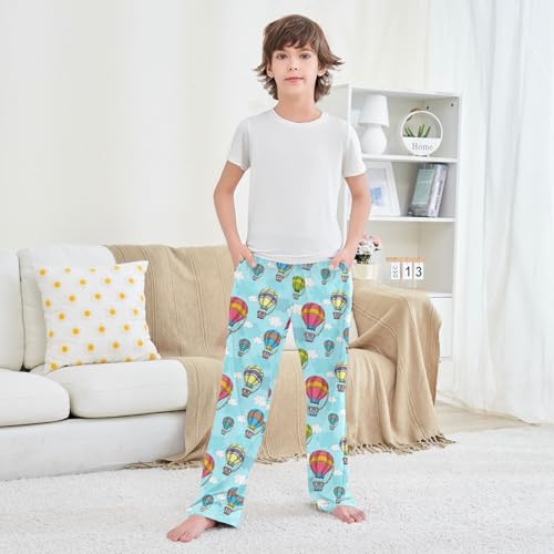 Hot Air Balloon Pattern Boys Long Pants Soft Trousers Elastic Waist Kids Lounge Bottoms with Pockets S-XL 1