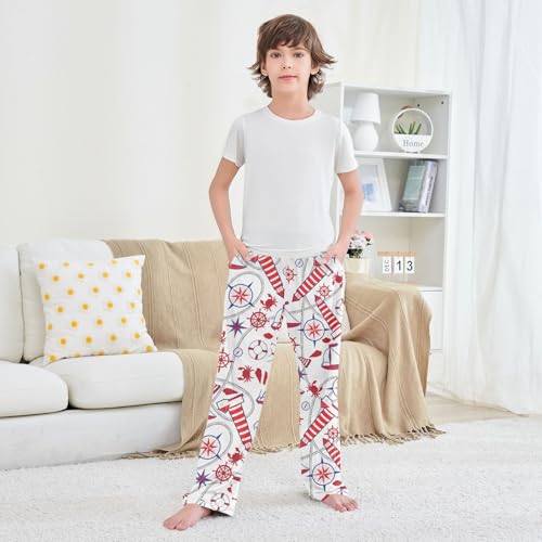 HOT ! ZZXXB Lighthouse Sailboat Boys Long Pants Soft Trousers Elastic Waist Kids Lounge Bottoms with Pockets S-XL