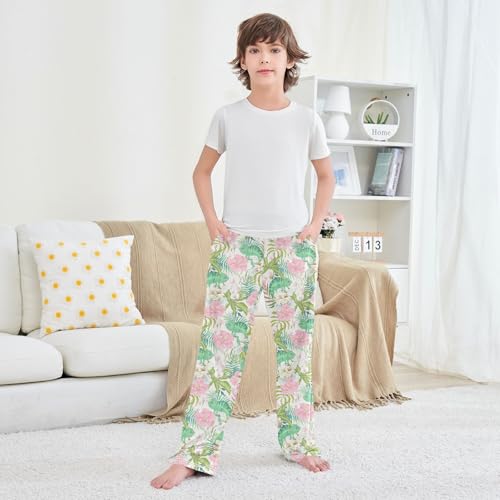 Chameleon Peony Flowers Boys Long Pants Soft Trousers Elastic Waist Kids Lounge Bottoms with Pockets S-XL 4