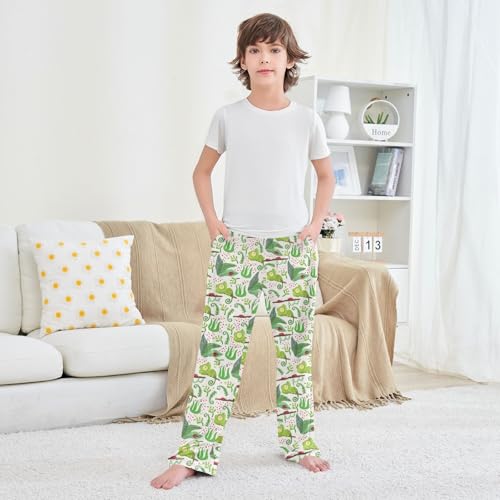 Chameleon Ladybug Cactus Boys Long Pants Soft Trousers Elastic Waist Kids Lounge Bottoms with Pockets S-XL 4
