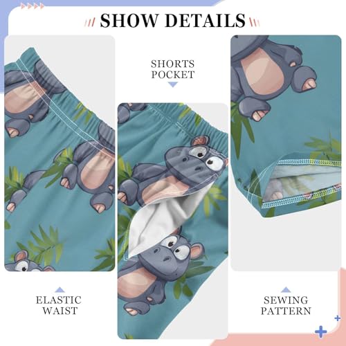 Pajama Pants Hippopotamus Leaves Pattern Long Sleep Pants Lounge Bottoms 5