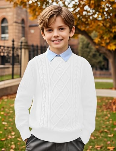 Boys Long Sleeve Crew Neck Sweaters Unisex Kids School Lightweight Cable Knit Pullover Sweater Tops 6