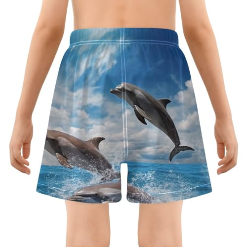 More information about Dolphins Jumping Ocean Boys Swim Trunks with Compression Liner Quick Dry Bathing Bottom Kids Beach Shorts