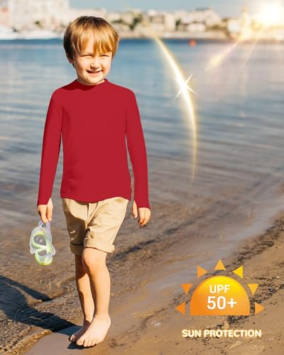 • High-quality Sun-proof Fabric: The boys rash guard long sleeve uses UPF 50+ grade sun-proof fabric, which can effectively block 98% of UVA/UVB rays in the sun, harmful ultraviolet rays, and protect children's skin from sunburn