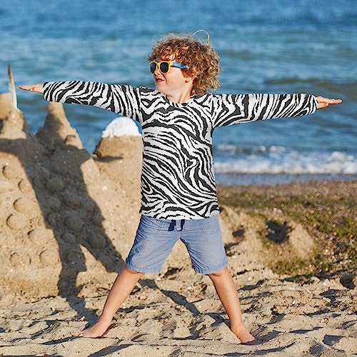 Pfrewn Kids Long Sleeve Rash Guard Shirt Tiger Zebra Animal Print Swim Shirt for Boys Girls UPF 50+ Sun Protective 5