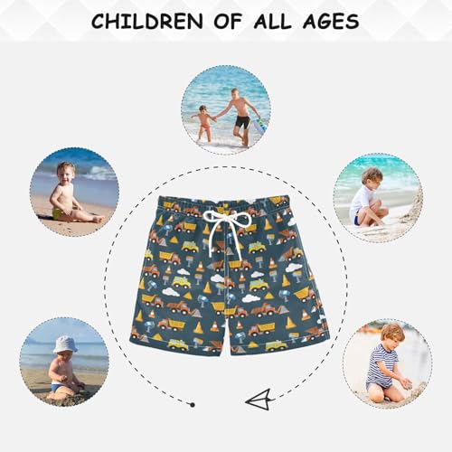 Boys Swim Trunks Quick Dry UPF 50+ Beach Board Shorts Kids Bathing Suits Swimsuit 2T Yellow Orange Truck 4