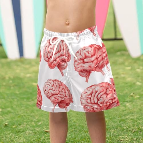 Pigsaly Boys' Swim Board Shorts Watercolor Cute Red Human Brain Body Boy's Swim Trunks Kids Swimwear XS 4