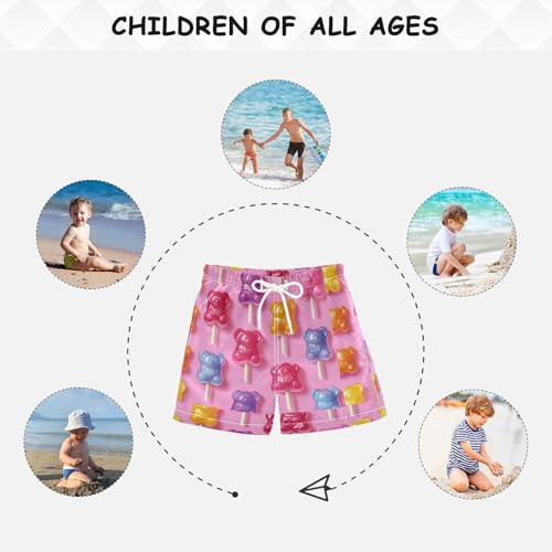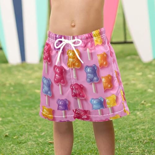 Pigsaly Boys' Swim Board Shorts Gummy Jelly Candy Bears Colorful Lollipops Boy's Swim Trunks Kids Swimwear S 2