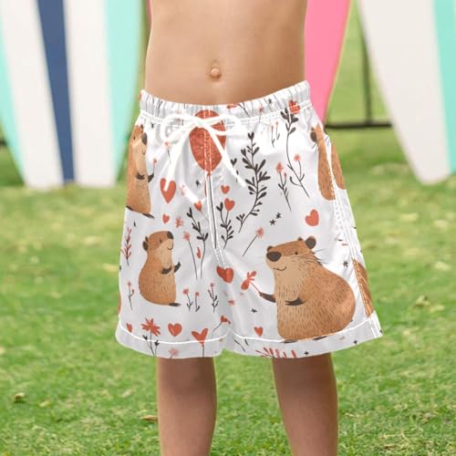 Pigsaly Boys Swim Trunks Capybara Balloon Heart Boys Board Shorts Swimsuit Swimwear Summer Bathing Suit 4T Multicolor 5