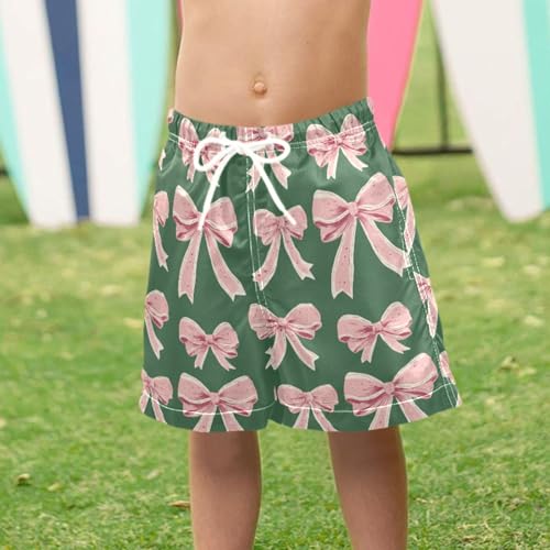 Pigsaly Boys Swim Trunks Coquette Pastel Pink Ribbon Watercolor Bow Boys Board Shorts Swimsuit Swimwear Bathing Suit 5T 3