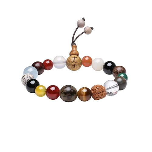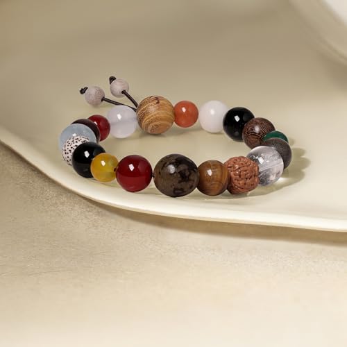 • Authentic 18 Beads Bracelet: Crafted with traditional “十八子” (eighteen seeds) design, blending diverse 8-12mm gemstones (agate, tiger’s eye, crystal) and natural wood beads. Each bead represents cultural symbolism, merging aesthetic appeal with spiritual heritage for a meaningful jewelry piece. Because of the natural properties of gemstone, each product is unique