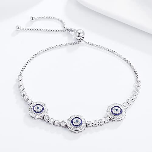 WOSTU Women Evil Eye Protection Bracelets 925 Sterling Silver White Gold Plated Adjustable Bracelets 3