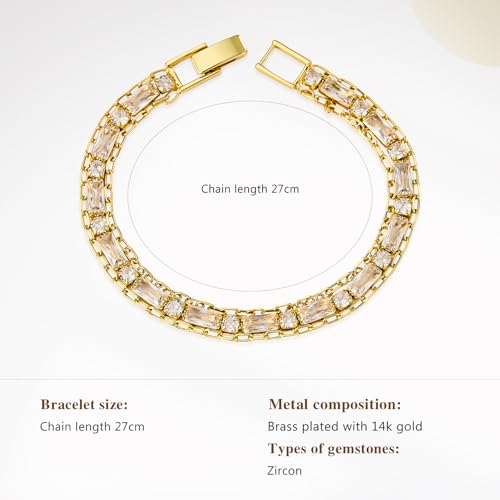 • WHAT MATERIAL: These chic double-layered bracelets plated in 14k gold, offering a luxurious and lasting shine. Sparkling cubic zirconia stones are meticulously set along both layers, adding a touch of brilliance and elegance