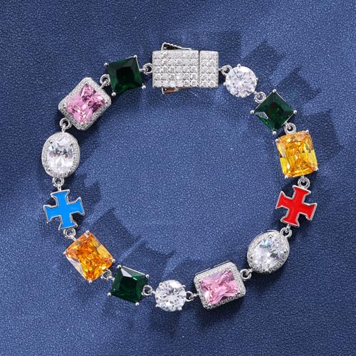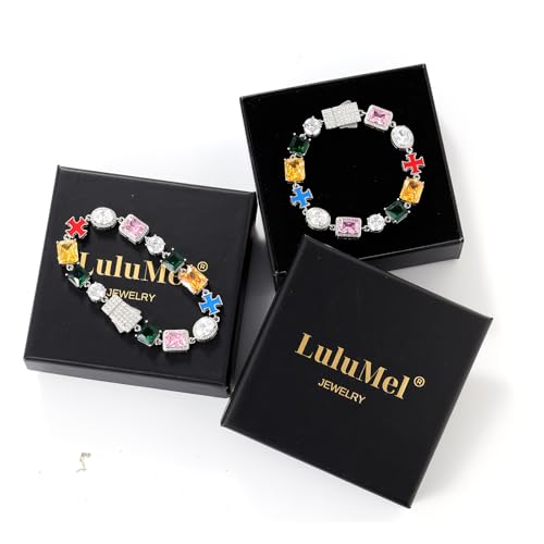 HOT ! Lulu Mel Colorful Tennis Bracelet Diamond Chain, 10mm Tennis Diamond Colorful Cross CZ Stones Link Chain, Sparkly Rainbow Crystal 7-8 Inches Bracelet Fashion Jewelry Gift