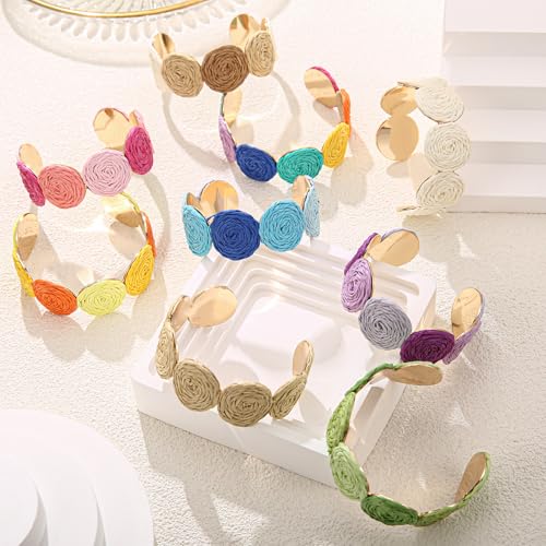Raffia Multiple Circles Cuff Bracelet for Women, Handmade Colorful Round Bangle Geometric Adjustable Statement Bracelet 5
