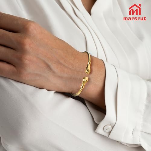 HOT ! Marsrut Brass Bracelets for Women, Bangles Jewelry in Fist Opening Embossing Design and Gold Color, Solid Cuff Bangle Bracelet for Women Men, 2.30" Inner Diameter, 1 Piece