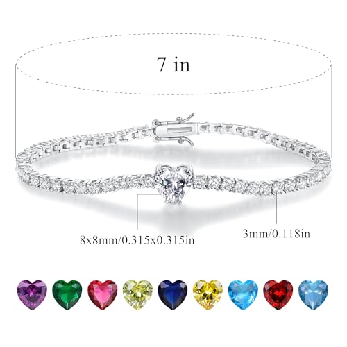 HOT ! TIKJE Tennis Bracelets for Women, Heart-Shaped Birthstone Cubic Zirconias Bracelet| 4.0mm White Gold Womens Bracelets for Birthday Gift| Size 7-7.5 inches