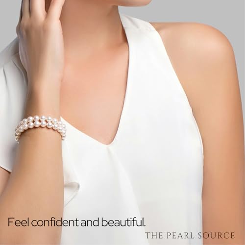 HOT ! The Pearl Source Yellow Gold Plated AAAA Quality Round White Freshwater Cultured Pearl Double Strand Bracelet for Women