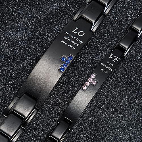 • ✅UNIQUE & EYE-CATCHING: Modern matching link bracelets lined with dark blue and light pink AAAAA-graded cubic zirconia in Cross shape – perfect for Christian couples.