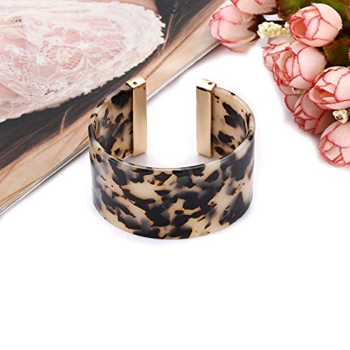 FAERLIIRY Wide Cuff Bangle Bracelet for Women Acrylic Resin Tortoise Bangle Bracelet Statement Adjustable Bracelet (Leopard) 5