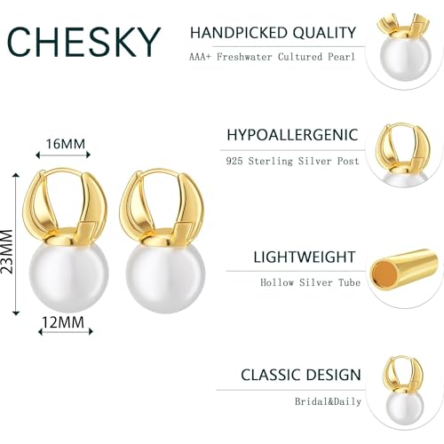 HOT ! CHESKY Pearl Earrings for Women, Dainty 14K Gold Plated/Silver Plated Drop Quality Handpicked AAA+ Freshwater Cultured Round Pearls Dangle Earrings Wedding Jewelry for Women Gifts
