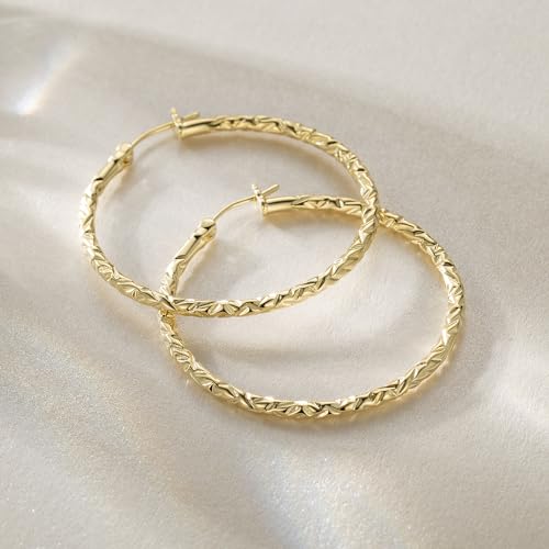 HOT ! Gold Hoop Earrings 14K Gold Hoop Earrings for Women Large 14K Earring Hoops Interlaced Engraving Design Womens Earring Hoops 35/40mm