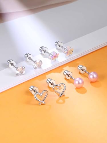 Surgical Stainless Steel Earrings for Girls Women Hypoallergenic Screw Back Earrings for Kids Jewelry Sensitive Ears 6
