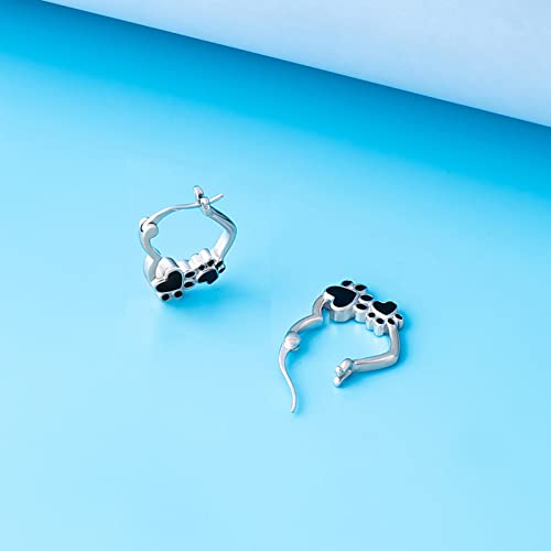 HOT ! 925 Sterling Silver Paw Print Earrings Heart Hoop Earrings for Women Puppy Dog Earrings for Pet Lovers Dog Mom Gifts Jewelry