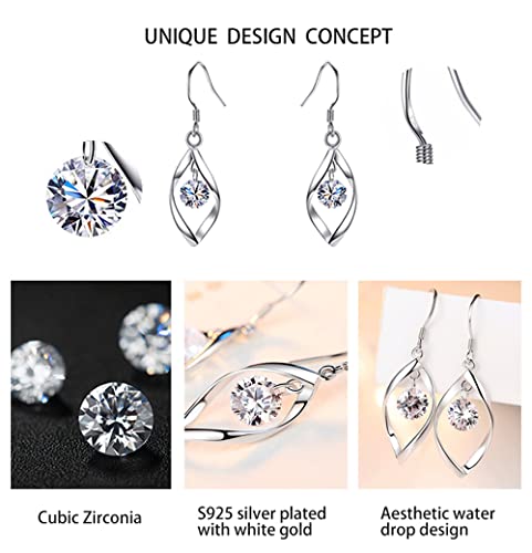 925 Silver Dangle Earrings for Women Hypoallergenic Cute Fashion Teardrop Drop Earrings Sparkly Nickel Free Crystal Hanging Dangly Dangling Earrings Jewelry for Women 4