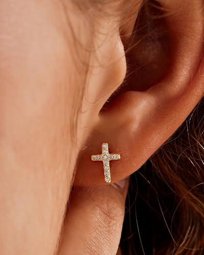 More information about Gold Earrings for Women 14K Gold Plated Cross Stud Earring Dainty Minimalist Simple Small Earrings Jewelry Gift for Her